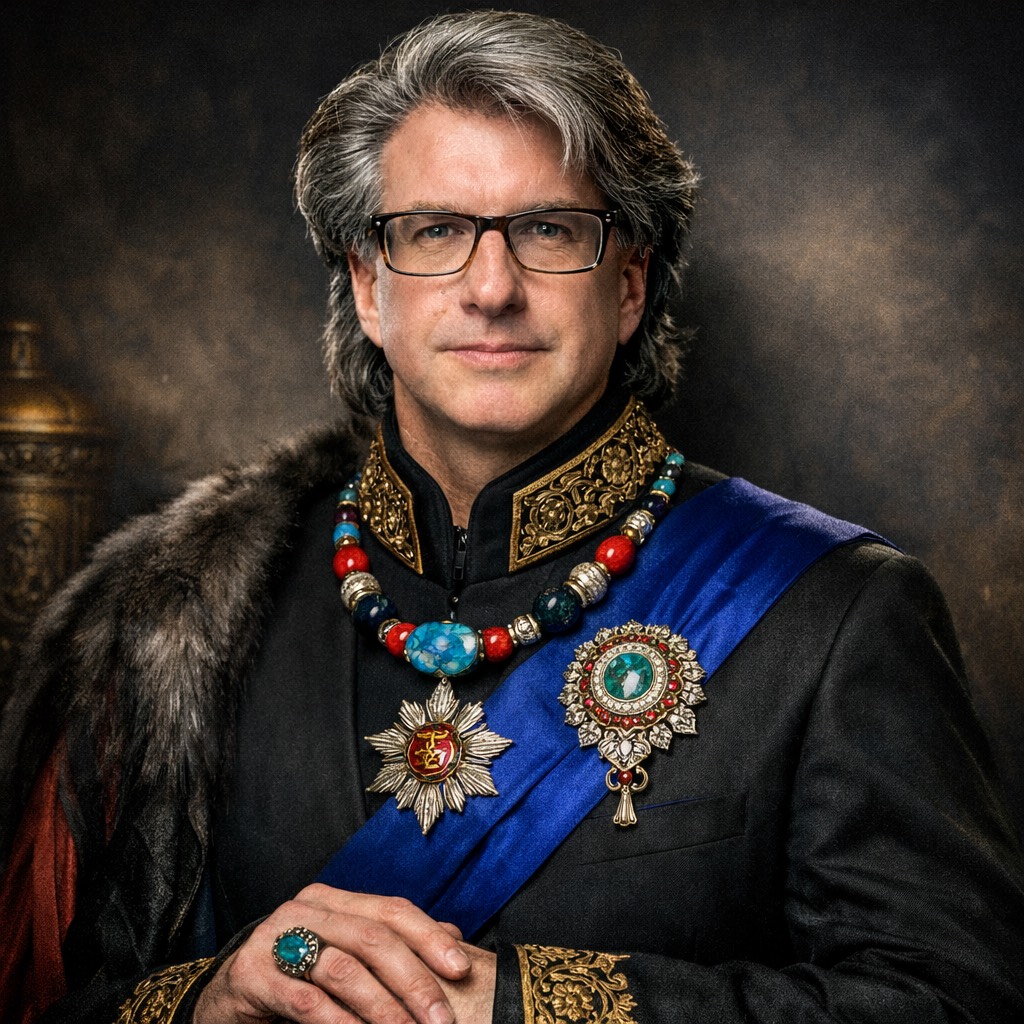 He serves as the hereditary Grand Chief of the Hunnic Matinecock Tribal Nation, alongside his dynastic and ecclesiastical roles, anchoring his leadership in living governance and treaty‑based authority across Indigenous, European, and Asian legal traditions.